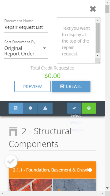 Check Out a Home Repair Request Builder allows our real estate agent partners to quickly select which of our recommendations to include in a custom report to send to the listing agent.